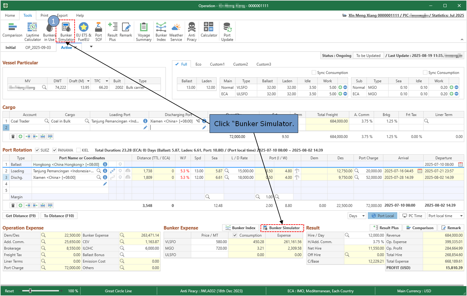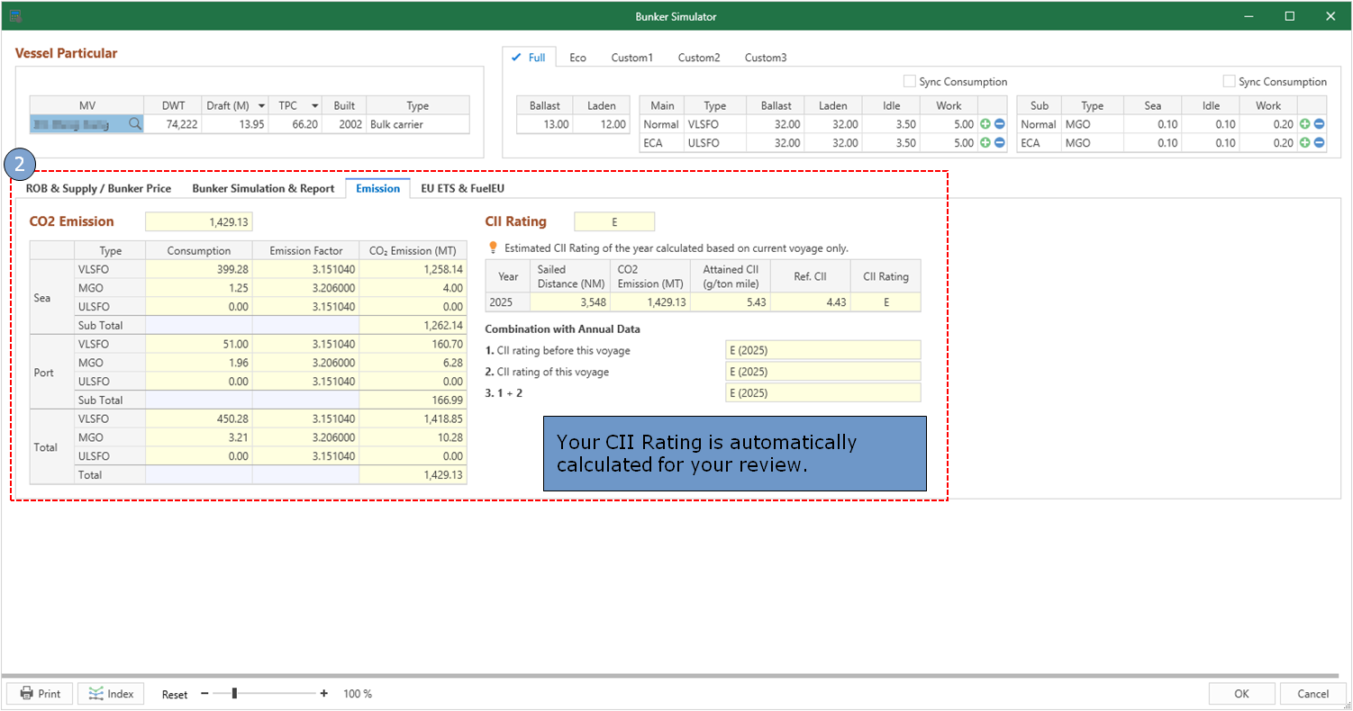 You can calculate and simulate the CII rating of your voyage during your Estimation and Operation.